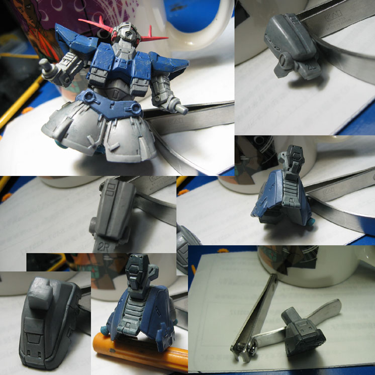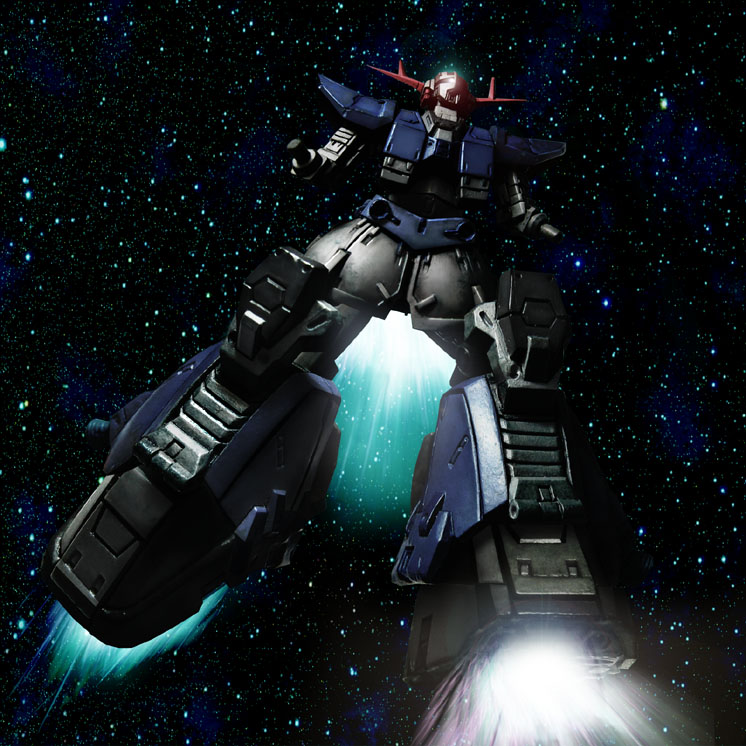 バラバラの足を合体させて質感弄って噴射光やモノアイを光らせました!!
